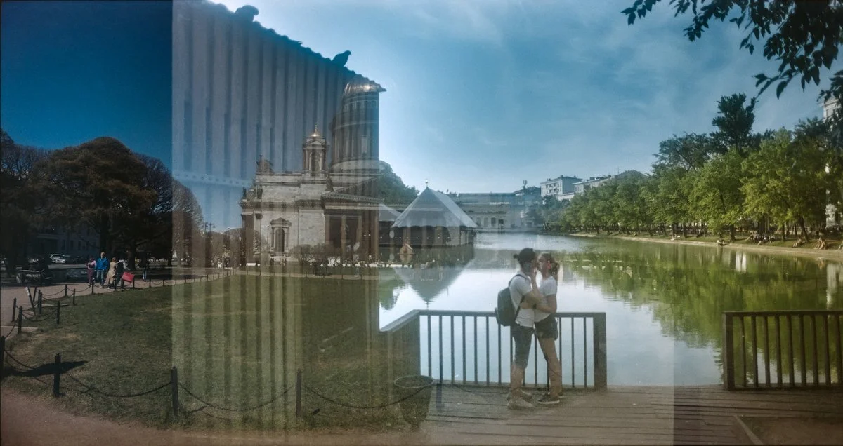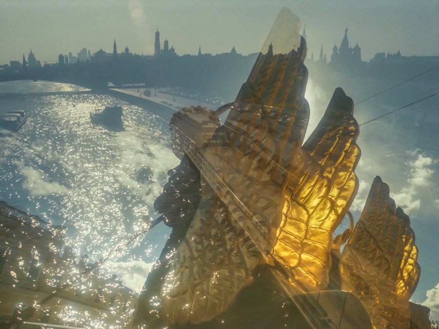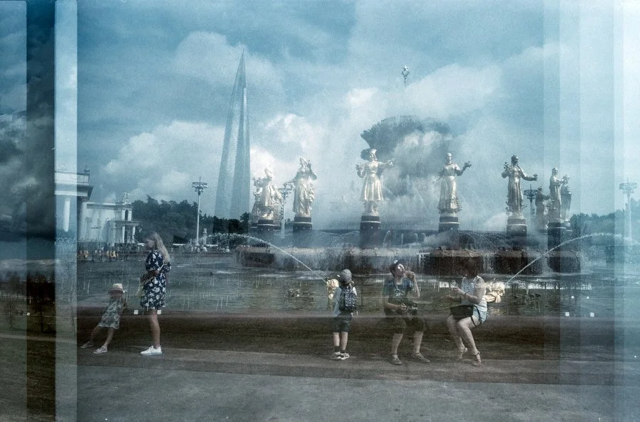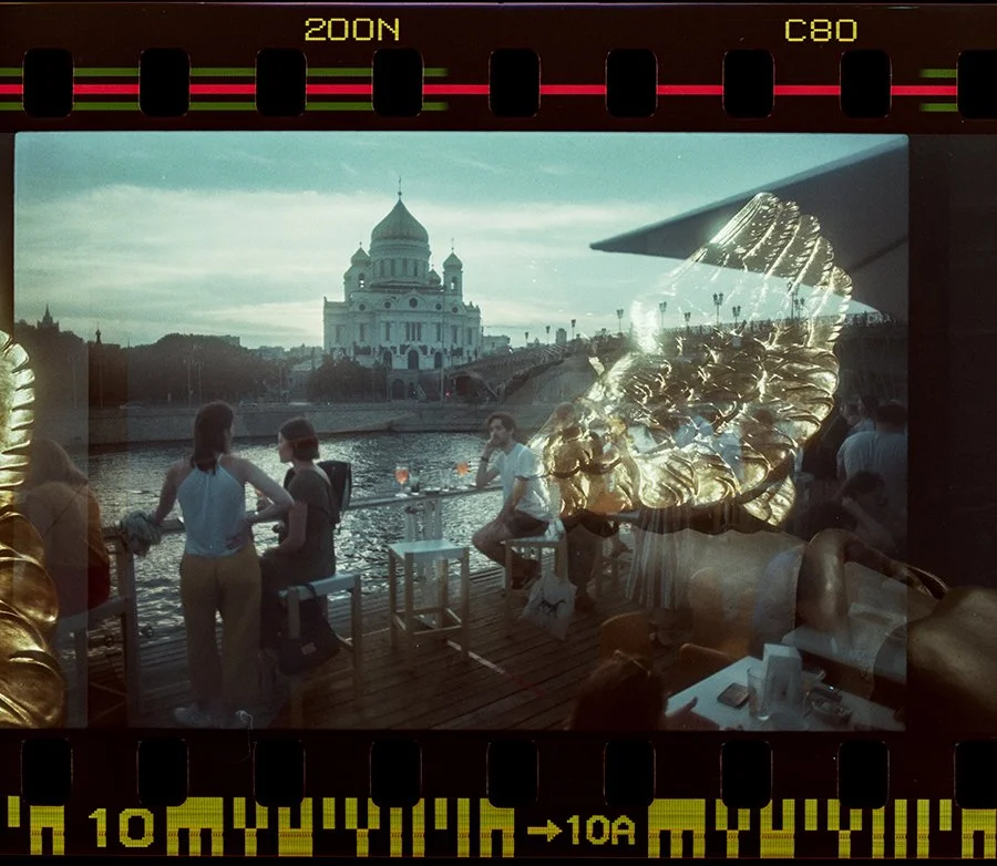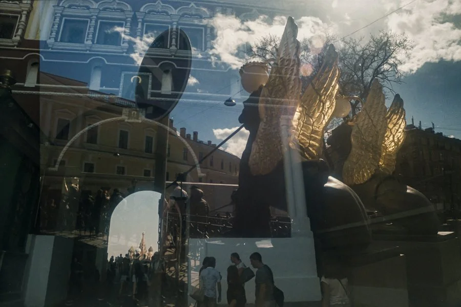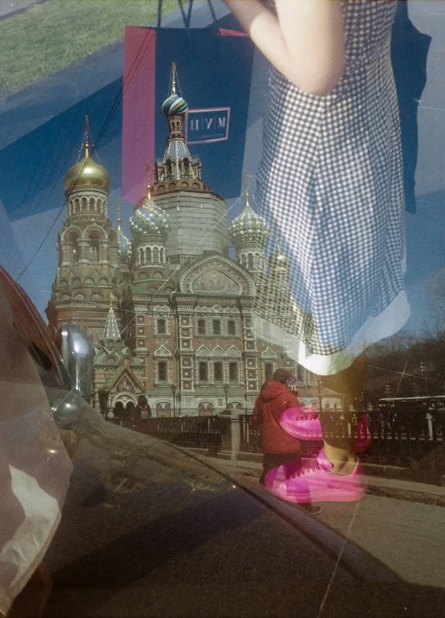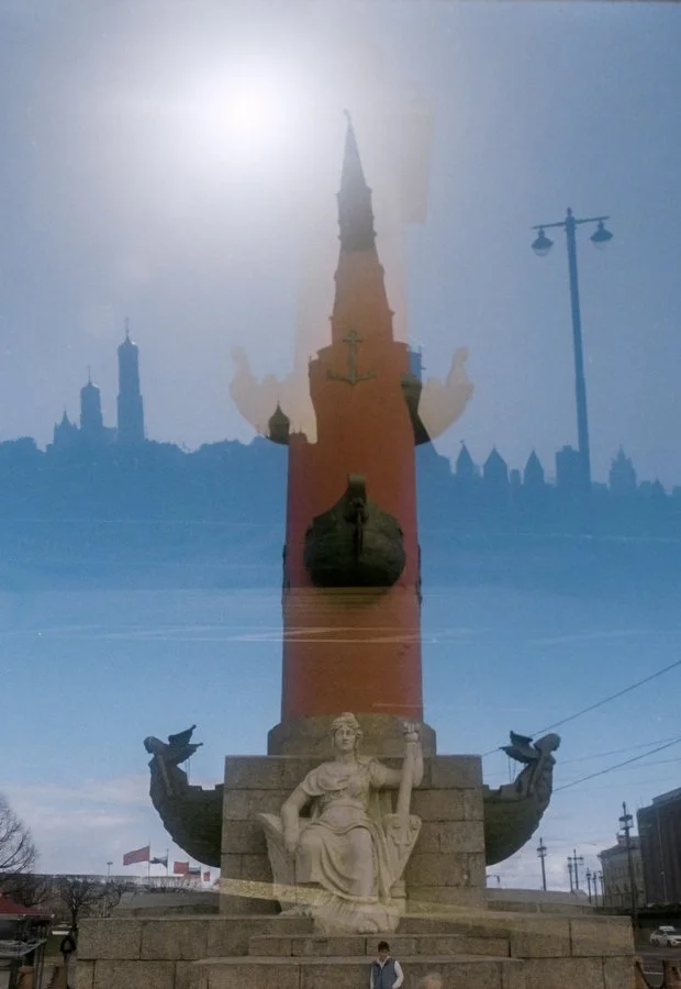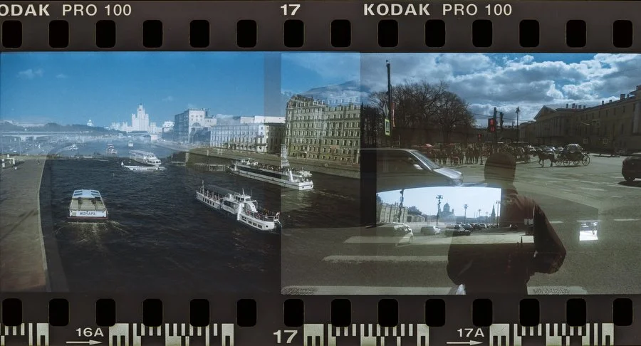 Двойная экспозиция на пленке, снятой в 2020 году сначала в Петербурге, а потом в 2021 в Москве.